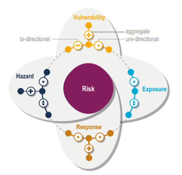기후변화 리스크는 기후변화로 인한 기후변동과 취약성을 고려한 자연 및 인간 시스템에 미치는 긍정적이거나 부정적인 사건 발생으로 인한 결과이며, 위해성, 노출성, 취약성의 상호작용으로 표현합니다.