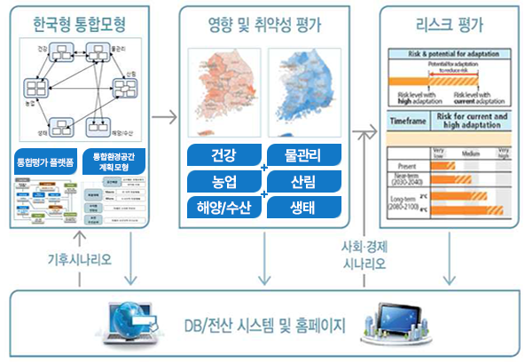 지금까지의 연구에 의하면 우리나라의 기후변화는 전 지구 평균보다 빠르게 진행되고 있으며, 높은 기후 변동성으로 인하여 폭염, 한파, 홍수 및 가뭄 등의 자연재해 발생 증가하고 있어 상대적으로 기후변화에 대한 취약성이 클 것으로 예상됩니다. 기후변화 대응 능력을 제고하기 위해서는 기후변화의 영향에 대한 정량적이고 보다 과학적인 예측이 필요합니다. 또한, 예측된 기후변화의 영향에 대해 체계적인 리스크 관리가 뒷받침되어야 합니다. 이러한 기후변화의 복합영향을 보다 정량적으로 평가할 수 있다면 적응정책 수립과 이행의 효과를 높일 수 있습니다.